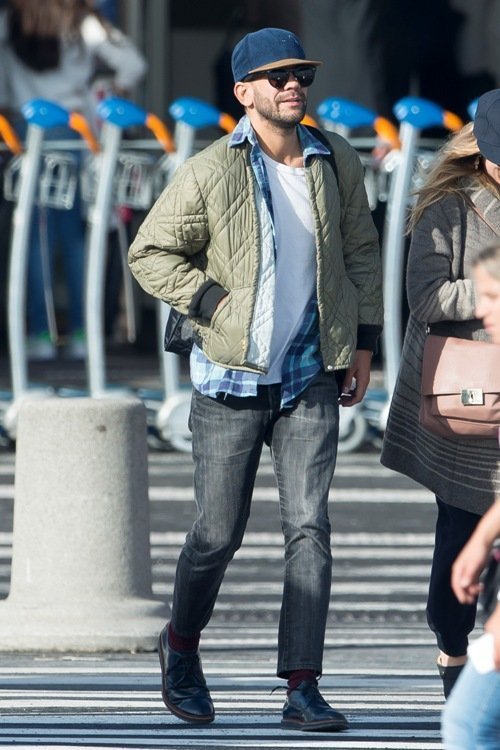 Ромэн, кстати, несмотря на небрежность своего наряда, выглядит пижоном – как и положено истинному французу. Обратите внимание, кепочка у него подобрана в аккурат под цвет туфлей, или туфли под кепочку, тут уж трудно угадать. А вот набор вещей, одетых на Скарлетт, поражает воображение: олдскульная бейсболка, пальто, которое в другом окружении могла бы выглядеть довольно элегантным, демократичные “треники” и сабо на деревянной подошве. Кепочку, судя по всему, актриса любит нежной любовью – мы уже видели ее в этом головном уборе в Венеции (точнее, видели кепку, под которой прячется Йоханссон).